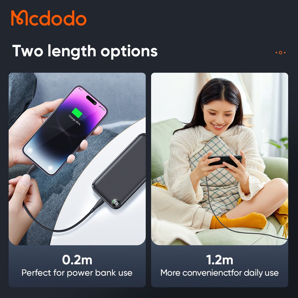 کابل کوتاه شارژ سریع تایپ سی به لایتنینگ 36 واتی مک دودو مدل MCDODO CA-4570 طول 20سانت