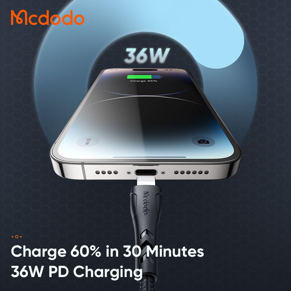 کابل شارژ سریع 36 واتی تایپ سی به لایتنینگ مک دودو مدل MCDODO CA-1321 طول 2 متر